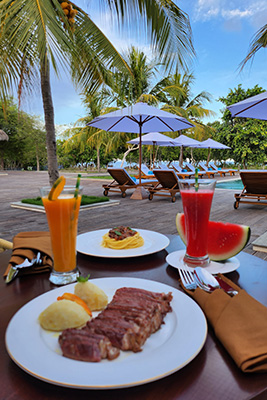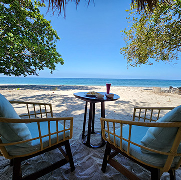 The chef at Kandora offers irresistible specialties, much of it made with products grown or reared on the island. The catch of the day, direct from the fishermen’s boats, is a highlight of the daily menu, which can be tailored to individual tastes.